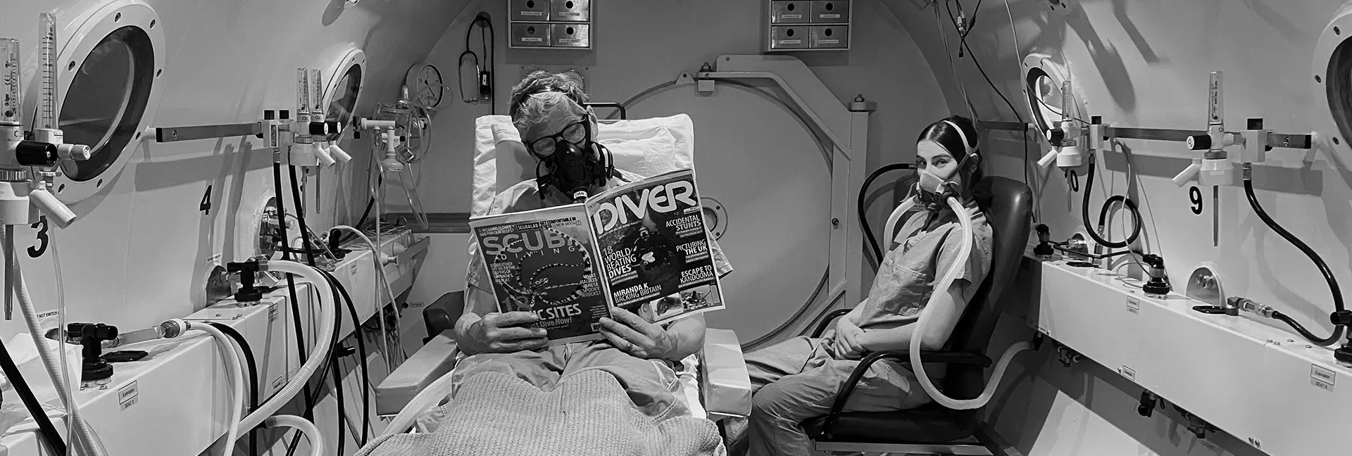 Commonly associated with divers, a Hyperbaric chamber is a pressure vessel used to treat a range of patients, including divers, suffering from various disorders such as decompression sickness, Air embolism, severe carbon monoxide poisoning and more.
