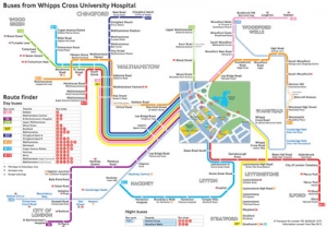 Buses W19, W15, W12, 357 stop within the hospital grounds. Buses 257, 56, and 230 also all stop near the hospital grounds at the Whipps Cross roundabout.