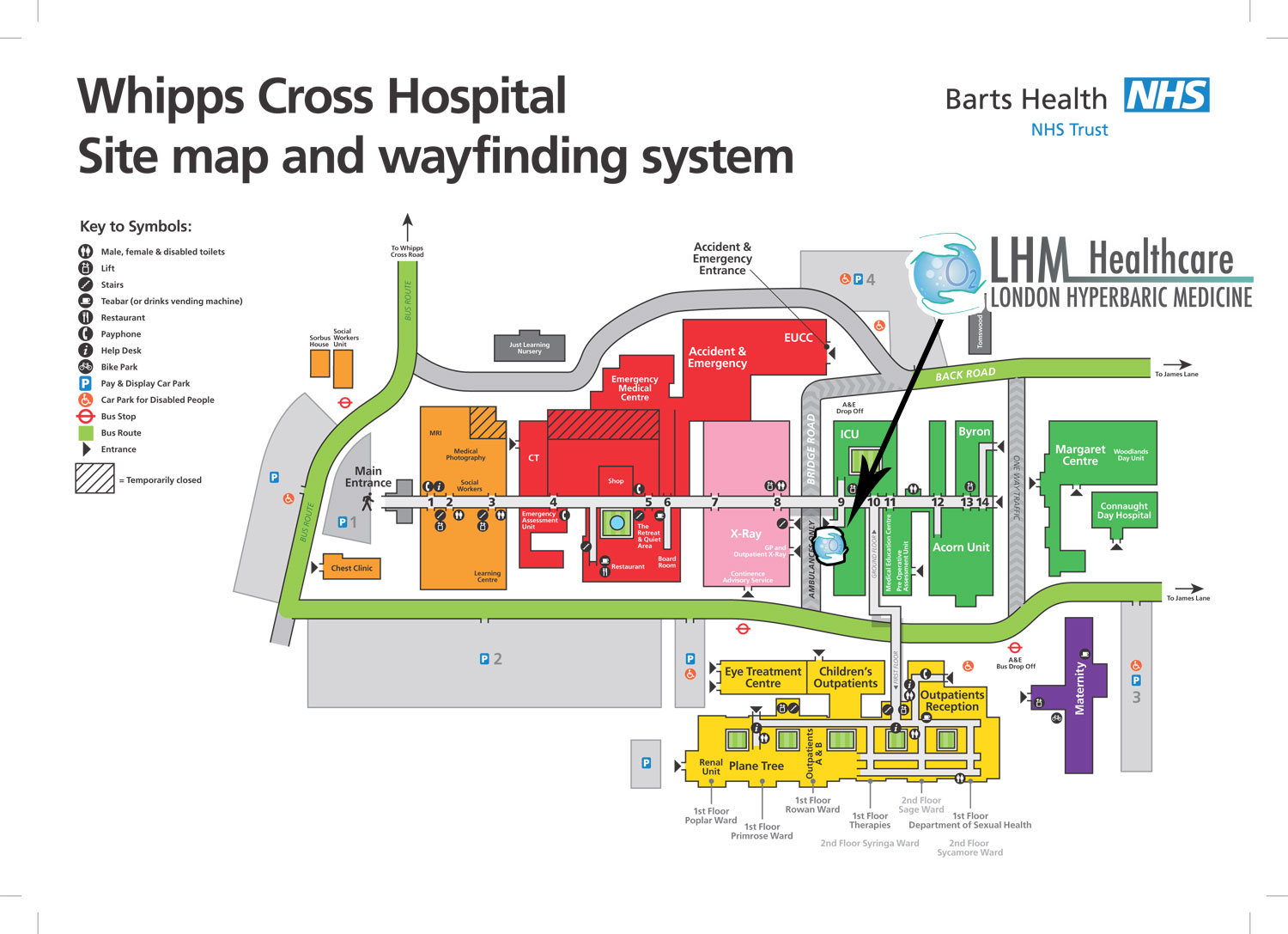 Our Private Care Hyperbaric facility is located at Whipps Cross University Hospital, and is supported by our long-standing partnership with the Barts Health NHS Trust. Situated by the edge of Epping Forest near Leytonstone, and beside the A12, it is conveniently accessed by tube, bus and car.